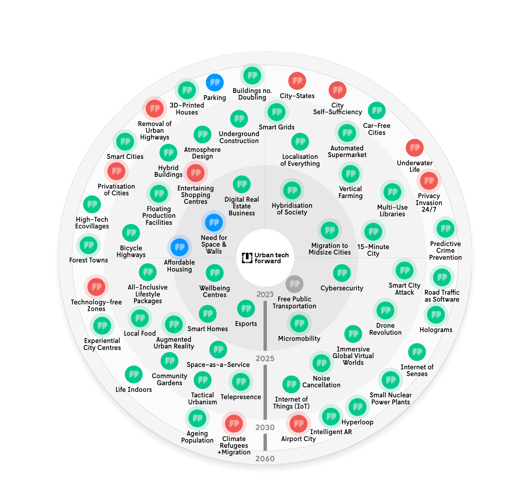 Explore the interconnections between trends in a holistic radar view and discover how one trend may catalyse a domino effect of change within the urban ecosystem.