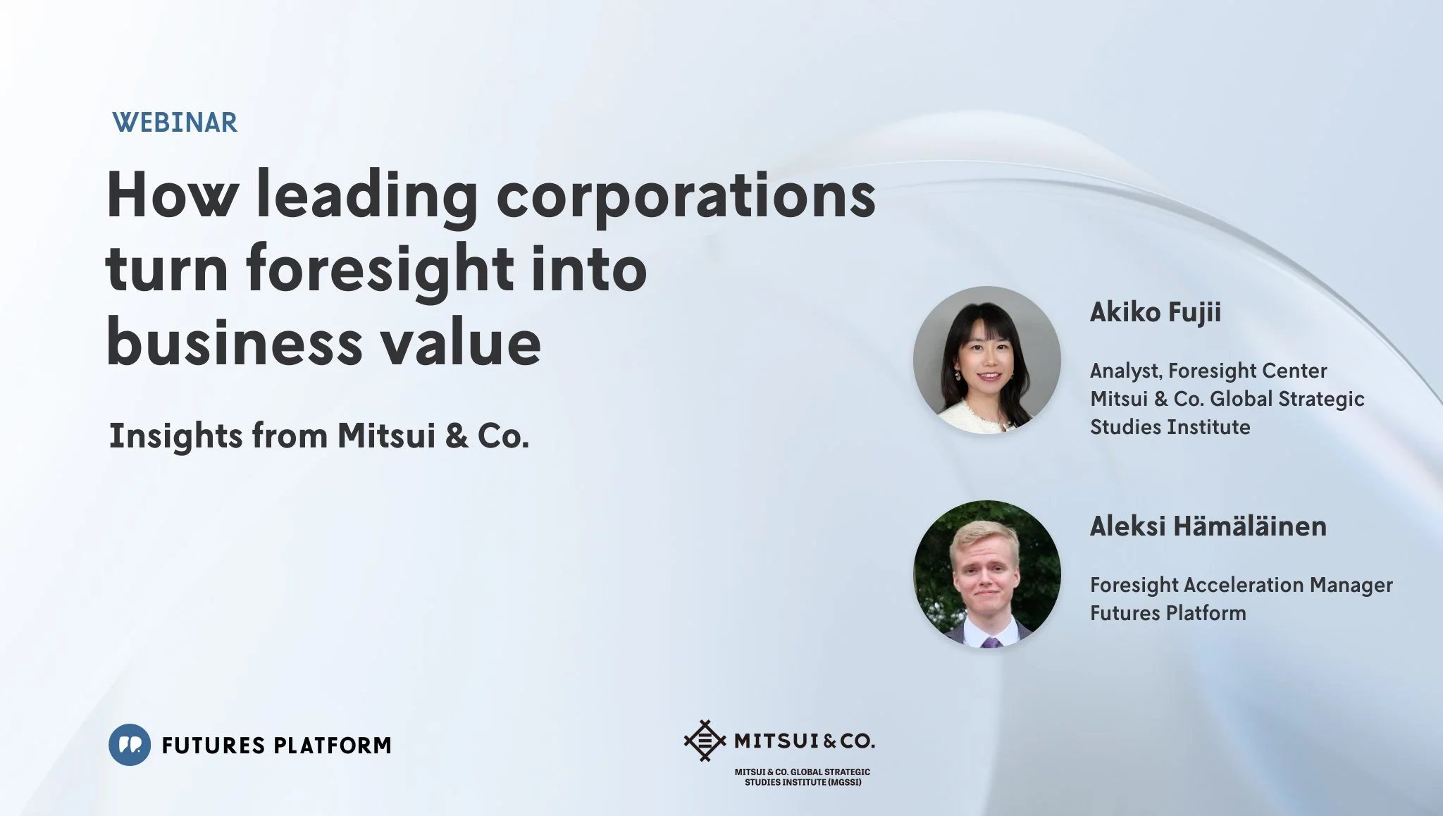 In this session, our guest speaker, Akiko Fujii, shares firsthand experiences of applying foresight within the Japanese business landscape and how Mitsui & Co. made foresight a core part of corporate strategy.